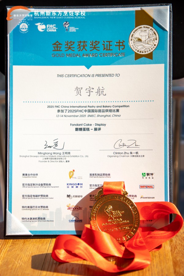 此次贺宇航老师斩获国际赛事金奖,再次印证了杭州新东方烹饪学校雄厚的教学实力与师资水平,也为在校学子树立了“技能成才、匠心筑梦”的榜样。