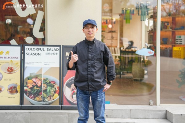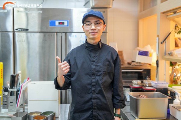 正是在这个人生十字路口,他在网上偶然看到了杭州新东方烹饪学校的招生信息。深入了解后,他做出了改变人生轨迹的决定:“我觉得它还是一个不错的学校,然后选择了到这边来学习。”