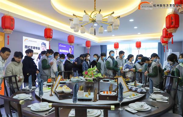 老师深入浅出地讲解了杭州新东方的人才培养模式,从热门专业的行业前景、教学内容、就业方向等方面,一一分析了每个专业的优势。同学们围绕中餐、西点、西餐等感兴趣的专业进行了深入探讨,现场氛围异常高涨。