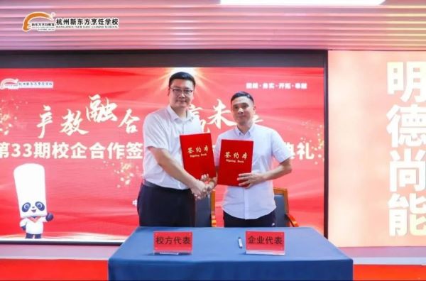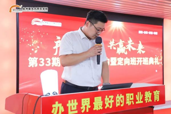 为了持续提高我校就业质量,促进学校、企业、学生的三方良性互动。8月7日下午,杭州新东方职业学校特开展第33期产教融合签约仪式开班典礼。