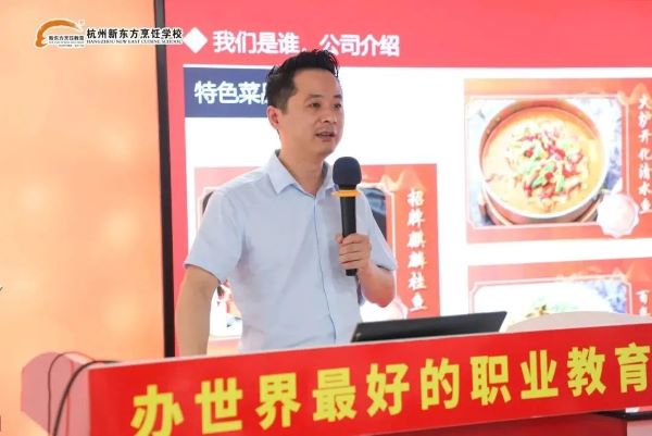 随着国歌奏响,开班典礼正式拉开序幕。杭州新东方由校长助理石玉亮坐阵,今日到场的企业一共有5家,分别是浙江隆聚集团股份有限公司、钱江源餐饮有限公司、杭州江南驿都市酒店有限公司、杭州壹品轩餐饮管理有限公司、浙江华味餐饮管理有限公司。