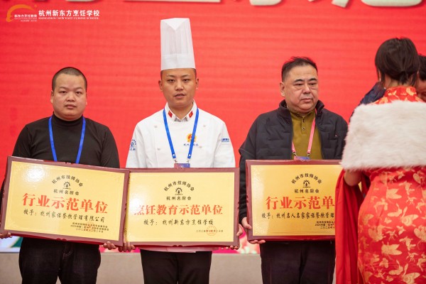 在这场行业盛会中,杭州新东方烹饪学校实力斩获 “烹饪教育示范单位” 殊荣!这一荣誉的获得,是指导单位杭州市人力资源和社会保障局、浙江省餐饮行业协会,主办单位杭州市技师协会对学校在烹饪教育领域深耕细作的高度认可,更是行业对学校培养烹饪人才成果的充分肯定。