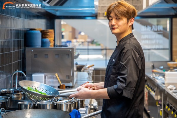 入职面试时,厨师长一句“你的刀工怎么样?”,成了他的高光时刻。现场切制的黄瓜,尽显扎实功底,不仅让他顺利通过面试,更让他在一众老员工中脱颖而出,为初入职场的自己树立了十足信心。“从杭州新东方出来,刀工勺工的基础优势真的很明显,有底子在,干活就有底气,不会因手足无措失去信心。”马理想感慨道。