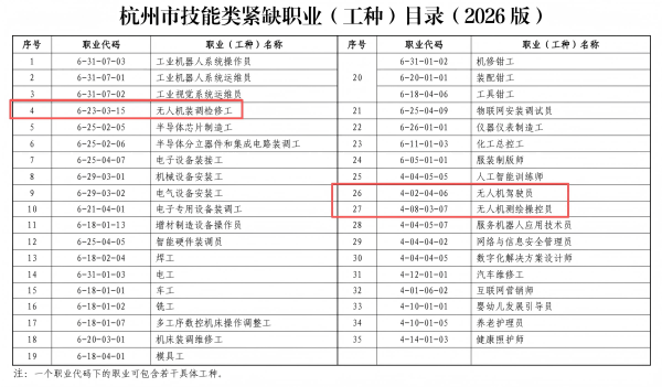 政策官宣!杭州2026年紧缺工种发布,无人机专业成技能成才黄金赛